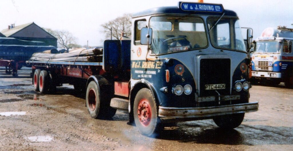 Pictured in the depot at Longridge in its original livery Atkinson Borderer 4 x 2 tractor unit Reg No PTC 440K Fleet No 8  ‘Faithful’ (Chassis No FC 20666) cost £5,625. 59p direct from Atkinson Vehicles Ltd Walton le Dale on the 17th of June 1972 and was first registered for road use two weeks later on the 1st of July 1972.