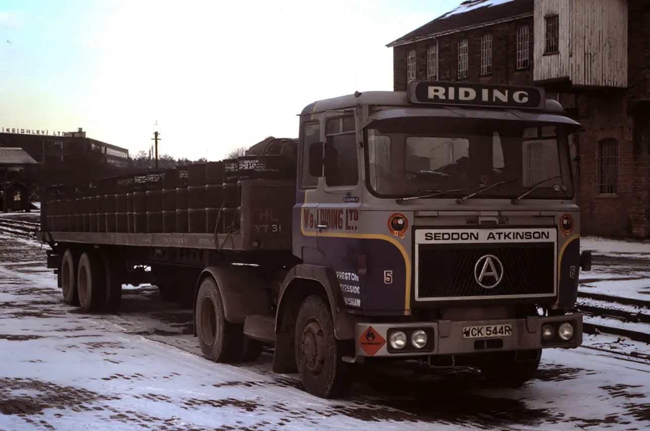 First registered on the 3rd of March 1976 it was driven from new by Ted Woods and was the first of many Seddon Atkinson 400 Series 4×2 tractor unit’s to enter service with Riding’s.
